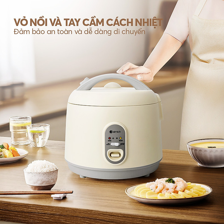 Thông tin sản phẩm Nồi cơm điện Elmich RCE9250Nấu cơm ngon, giữ trọn vị – Tiện lợi, dễ dùng cho mọi gia đìnhNếu bạn đang tìm kiếm một chiếc nồi cơm điện đơn giản, dễ sử dụng, nhưng vẫn đảm bảo n...
