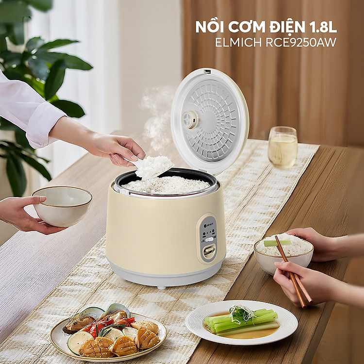 Elmich RCE9250 có dung tích 1.8L, đáp ứng tốt nhu cầu nấu cơm hàng ngày cho gia đình 4–6 thành viên. Không quá lớn để gây lãng phí, cũng không quá nhỏ khiến phải nấu nhiều lần – đây là dung tích lý tưởng cho các bữa cơm vừa đủ, tròn vị yêu thương.