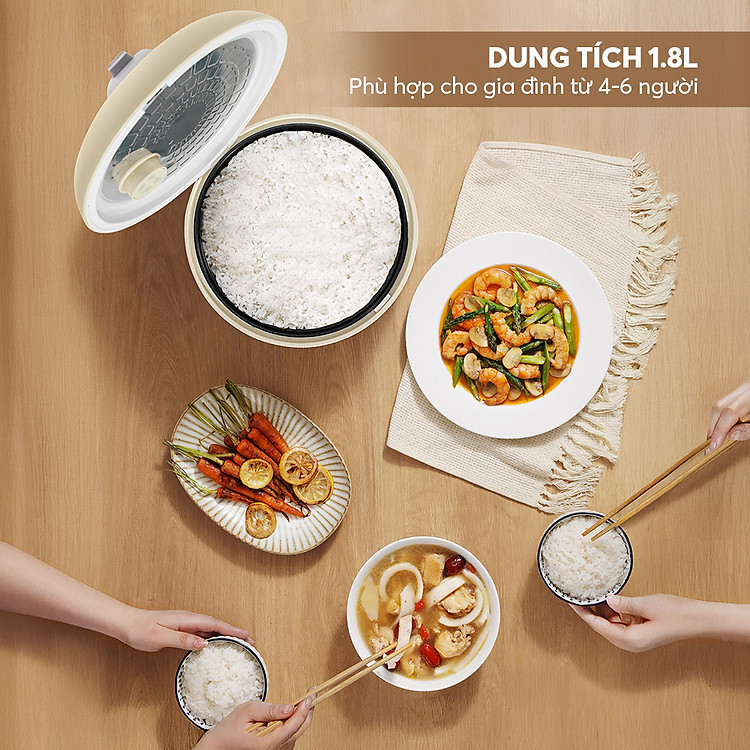 Với thiết kế tối giản, thao tác dễ dùng, dung tích 1.8L phù hợp cho gia đình 4–6 người cùng nhiều tính năng tiện ích, sản phẩm mang lại trải nghiệm nấu ăn nhẹ nhàng nhưng hiệu quả, đúng chất “trợ thủ quốc dân” của mọi căn bếp.