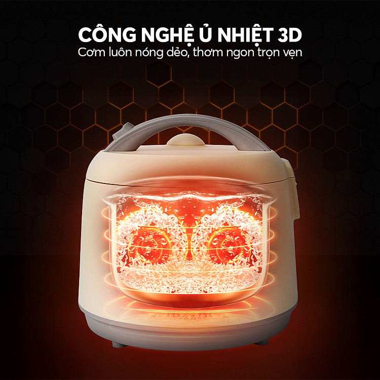 Sử dụng công nghệ ủ nhiệt 3D , nhiệt được truyền từ đáy nồi lên giúp cơm chín đều, mềm dẻo và giữ được hương vị lâu hơn.