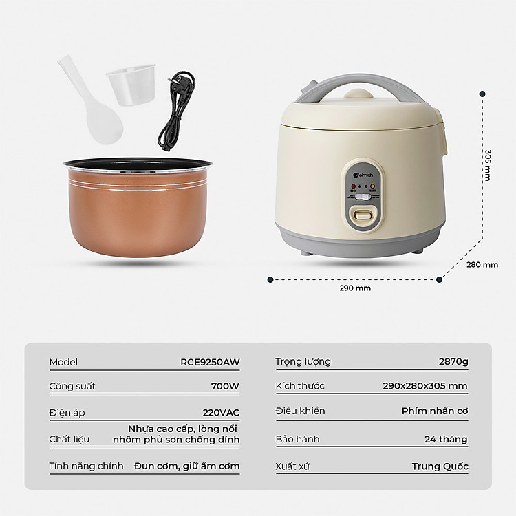 Nếu bạn đang tìm kiếm một chiếc nồi cơm điện đơn giản, dễ sử dụng, nhưng vẫn đảm bảo nấu cơm dẻo ngon, tiết kiệm điện và bền bỉ theo thời gian – Elmich RCE9250 chính là lựa chọn hoàn hảo dành cho gian bếp nhà bạn.