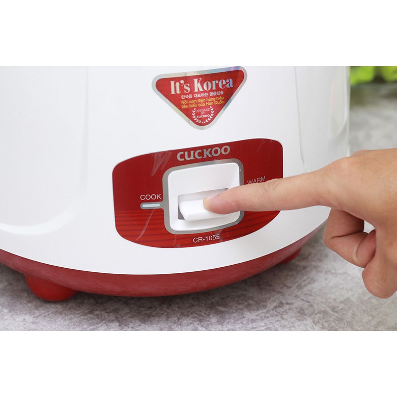 Nồi cơm nắp gài Cuckoo CR-1055 kết hợp giữa màu trắng và đỏ mang đến vẻ ưa nhìn cho gian bếp gia đình. Nồi được tặng kèm cốc đong gạo và muỗng múc cơm. Ngoài ra, không chỉ nấu cơm ngon, bạn còn có thể dùng nồi cơm điện để làm bánh, nấu xôi cũng hấp dẫn không kém. Dung tích 1.8 lít, đủ sức nấu ăn cho gia đình từ 4 đến 6 người Quai xách giúp bạn dễ dàng di chuyển nồi, không lo va đập 2 mâm nhiệt, công suất 650 W nấu cơm mau chín, tơi ngon Mâm nhiệt trên nắp giữ cho cơm ráo mặt nhưng không bị khô cứng. Van thoát hơi ổn định hơi nước trong nồi, giữ lại vitamin trong gạo Lòng nồi hợp kim nhôm phủ lớp chống dính bền, an toàn Không gây hại cho sức khỏe người dùng, đảm bảo cơm không bị cháy khét hay bị dính vào nồi khi nấu và giúp công đoạn lau chùi thêm dễ dàng. Nồi cơm nắp gài Cuckoo CR-1055 thuộc thương hiệu Cuckoo – Hàn Quốc, uy tín, chất lượng được người tiêu dùng tin tưởng và lựa chọn, đảm bảo mang lại sự hài lòng cao nhất cho khách hàng khi sử dụng sản phẩm.