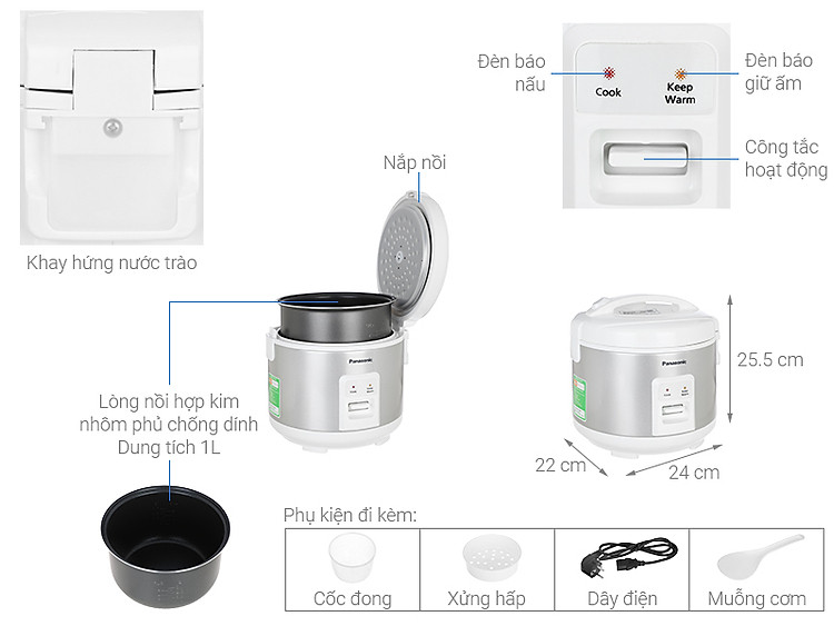 - Phụ kiện đi kèm: xửng hấp, muỗng cơm và cốc đong.