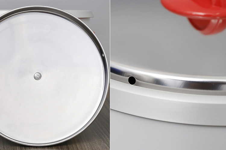 Nắp nồi inox sáng bóng dễ vệ sinh, thiết kế có lỗ thoát khí chống trào