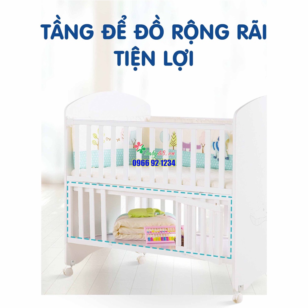 Nôi cũi giường Umoo 2 tầng tích hợp - Cũi ngủ, làm quây, bàn học