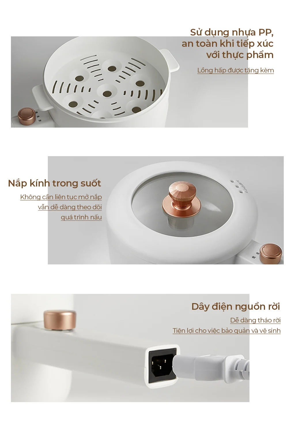 Ngoài ra Bear còn tặng kèm theo bộ sản phẩm một khay hấp giúp bạn dễ dàng hấp các loại rau trong khi nấu thức ăn, giúp bạn tiết kiệm thời gian nấu một cách đáng kể