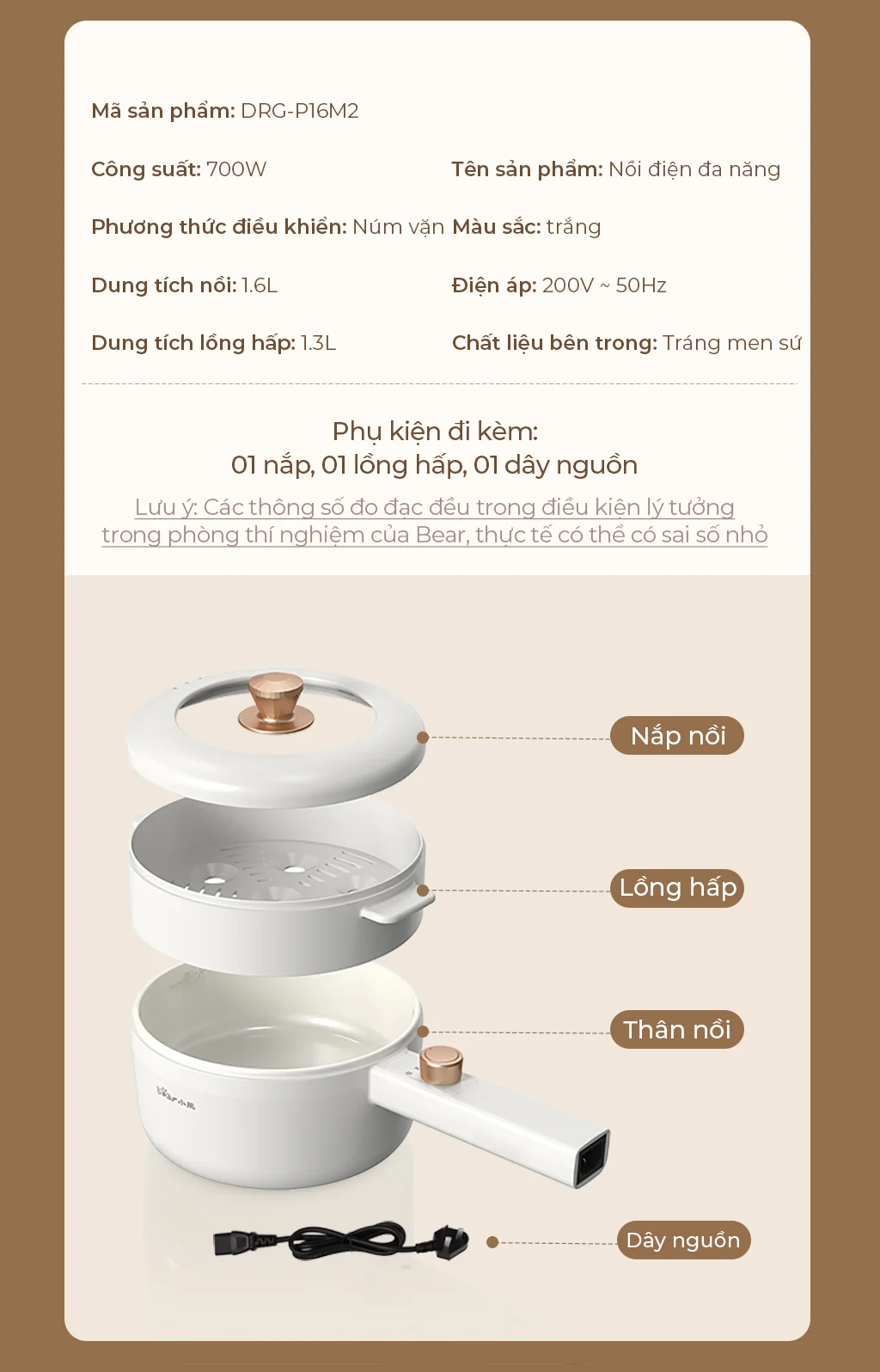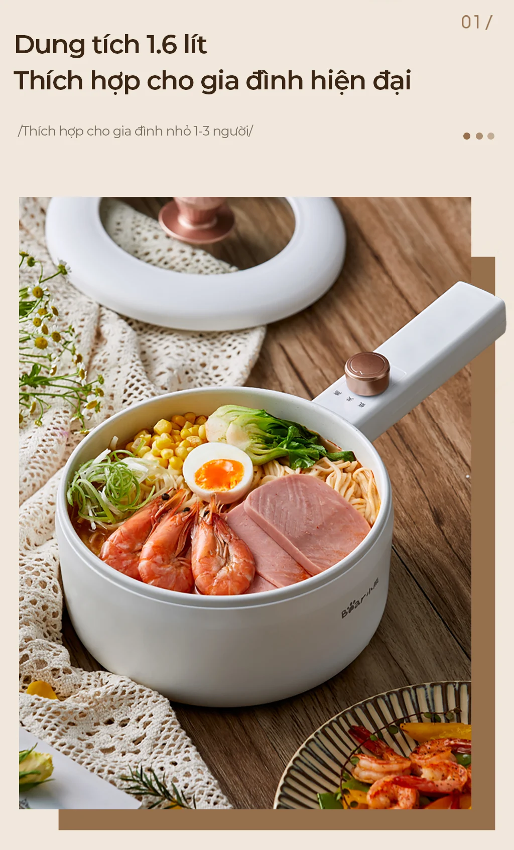 Nồi đa năng Bear có dung tích 1.6 lít, phù hợp cho những gia đình ít thành viên.