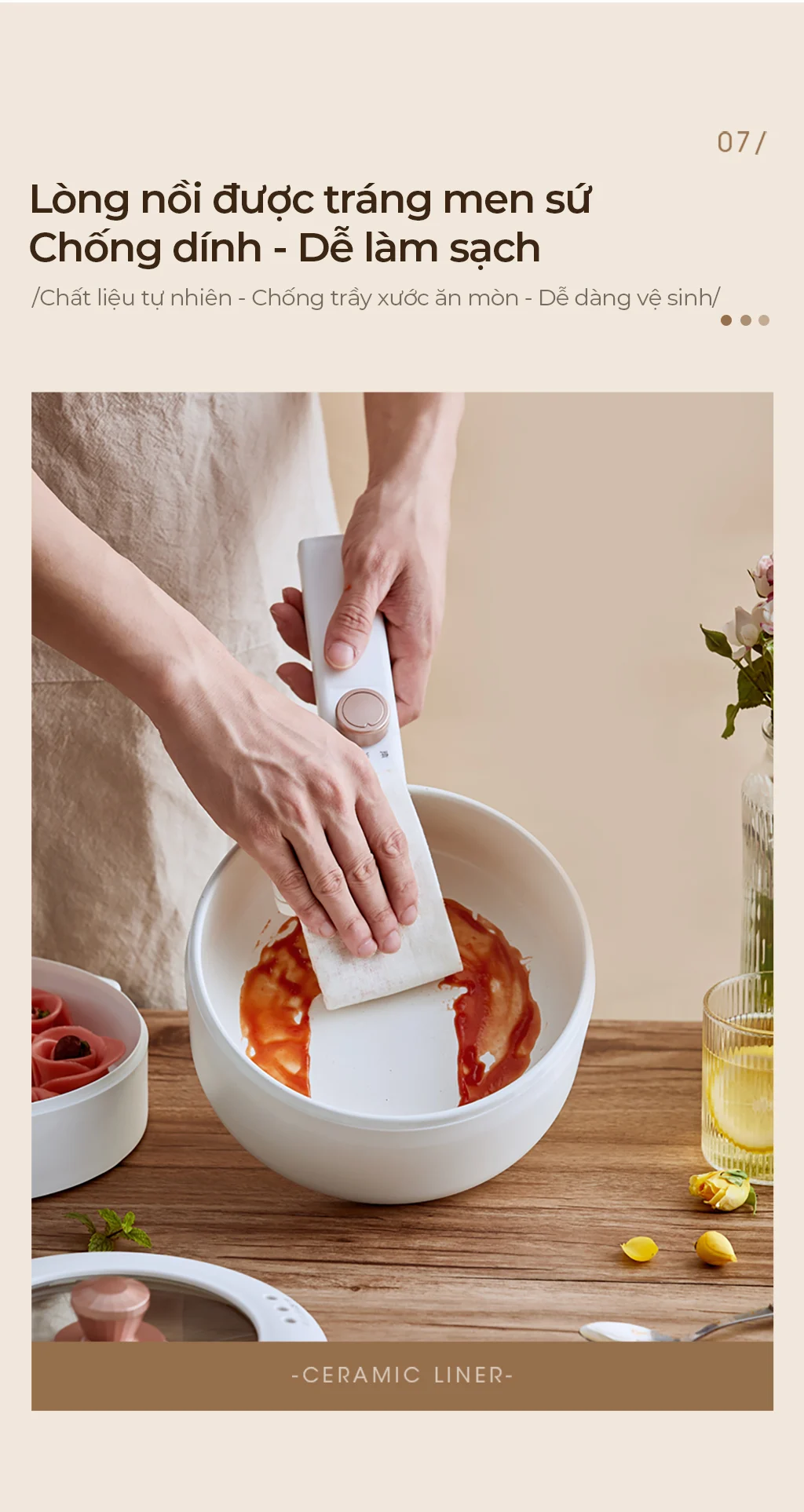 Nồi đa năng Bear được trang bị một lớp men chống dính cao cấp, dễ dàng vệ sinh lau chùi, bền bỉ theo thời gian. Trong quá trình nấu nướng không lo thực phẩm bị dính vào nồi gây khó chịu cũng như tính thẩm mỹ của món ăn. Đồng thời góp phàn làm giảm lượng dầu khi nấu ăn, giảm lượng mỡ thừa có hại cho sức khỏe.