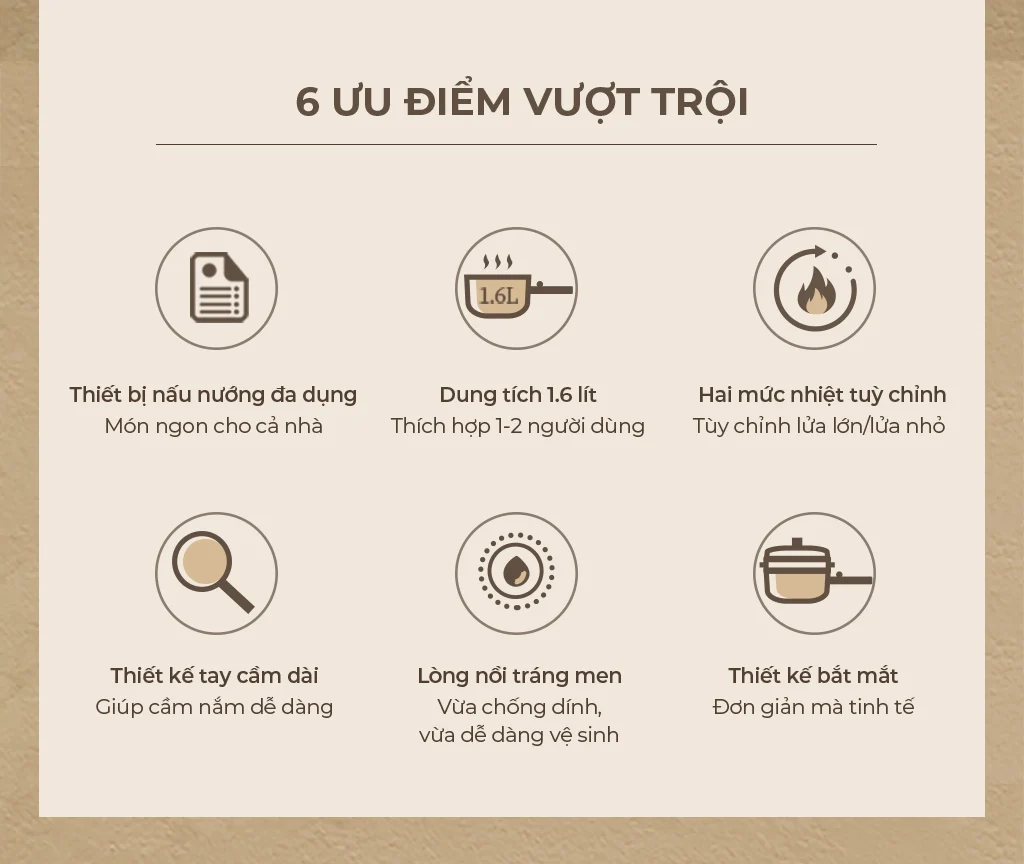Chỉ với một chiếc nồi mà bạn đã có thể làm được vô vàn những món ăn ngon như làm bánh, chiên trứng, xào rau, nấu canh,... đầy đủ các món chay lẫn mặn, chiên, xào, hấp làm cho bữa cơm gia đình thêm thêm cảm xúc.