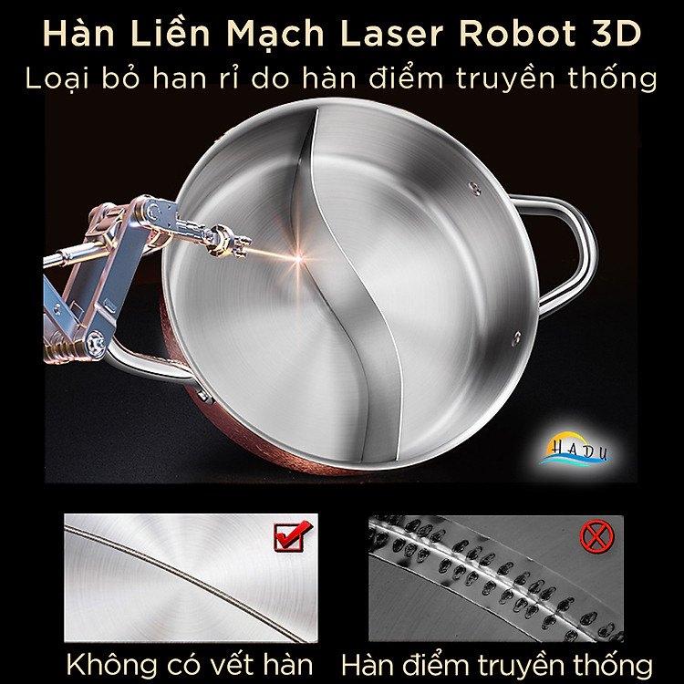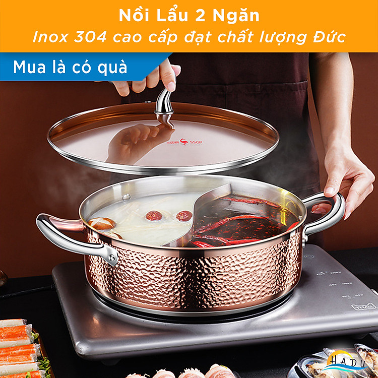 Nồi Lẩu 2 Ngăn Dùng Được Bếp Từ Đa Năng Inox 304 Cao Cấp 30cm Đạt Chất Lượng Đức SSGP