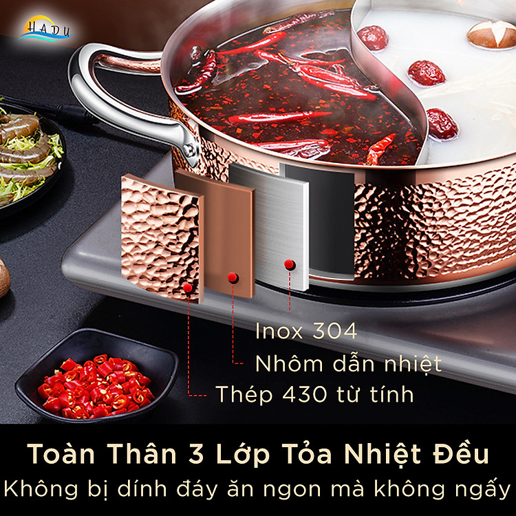 - Toàn thân 3 lớp tỏa nhiệt đều không bị dính đáy ăn ngon mà không sợ ngấy.
