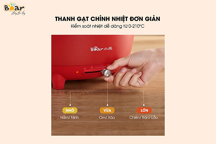 Thân nồi tích hợp thanh gạt giúp điều chỉnh và kiểm soát nhiệt dễ dàng hơn, để khởi động nồi bạn chỉ cần gạt nhẹ thanh gạt từ trái sang phải tương ứng với mức nhiệt từ 0 - 210 độ C và gạt ngược lại để giảm nhiệt trong quá trình sử dụng.