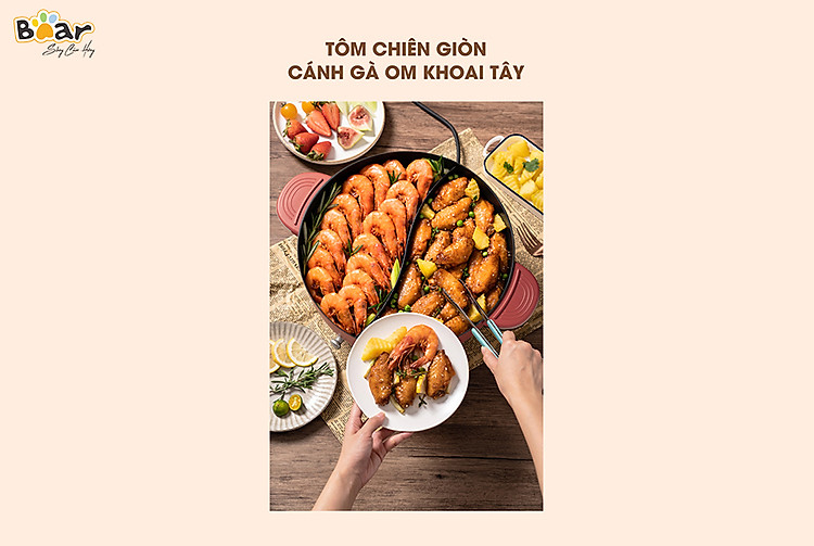 Sở hữu thiết kế thông minh với công nghệ nhiệt mới, khả năng chống dính hoàn hảo, nồi lẩu 2 ngăn Bear SUBE006 còn có khả năng chế biến nhiều món ăn đa dạng khác như các món chiên rán, kho, nấu canh, vô cùng tiện lợi.