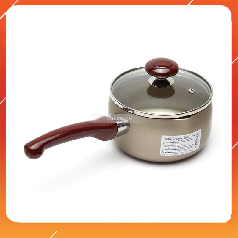 Giới thiệu Nồi nấu bột cho bé SUNHOUSE ❤️FREESHIP❤️ Quánh nấu bột Anod Nhôm màu Đồng 14CM