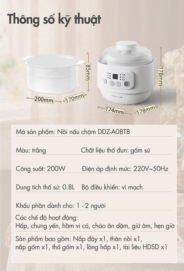 Tương tụ với nồi nấu chậm Bear DDZ-A08D1, ngưởi dùng vẫn hoàn toàn an tâm về vấn đề sức khỏe cho các thành viên trong gia đình khi sử dụng chiếc mới.