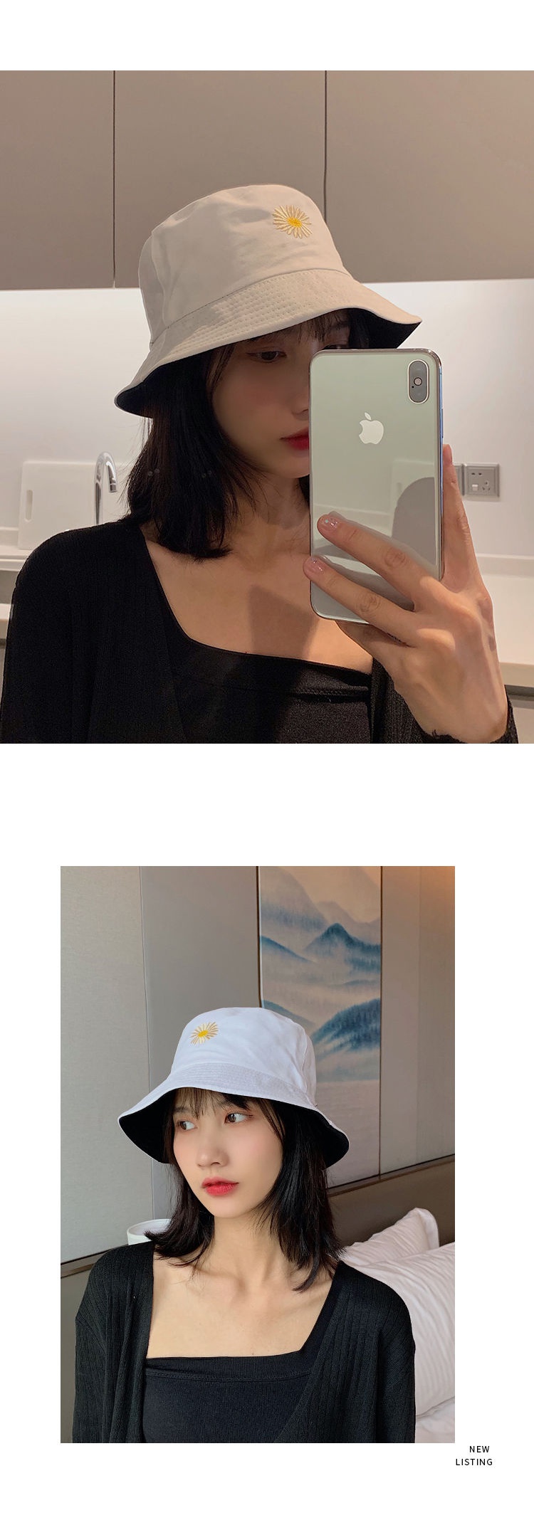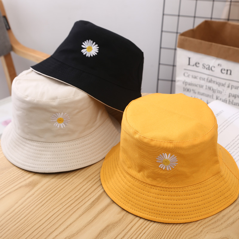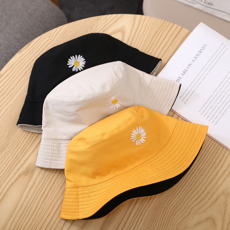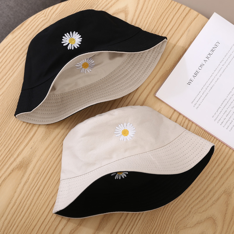 ️ Nón tai bèo (nón bucket) 2 mặt bằng vải có màu sắc 2 mặt khác nhau . Mặt bên trong và ngoài đều có thêu hoa cúc.