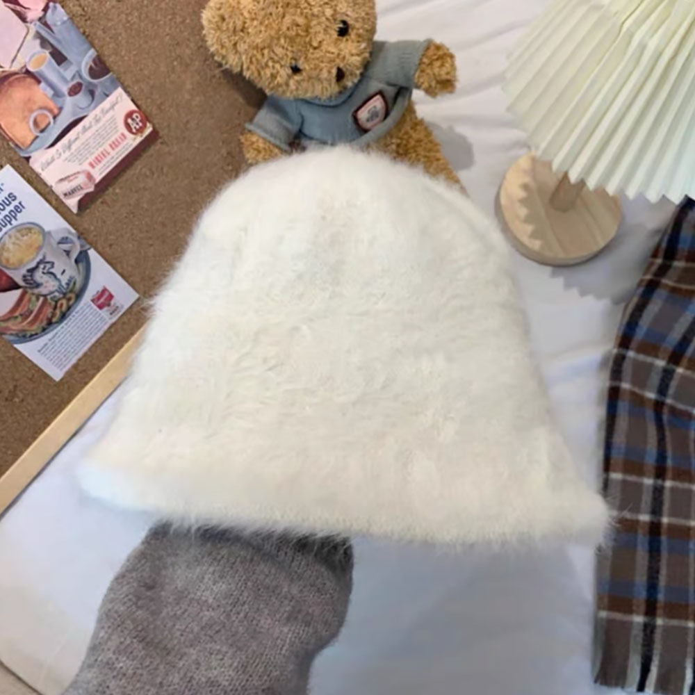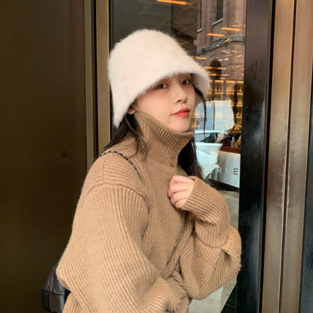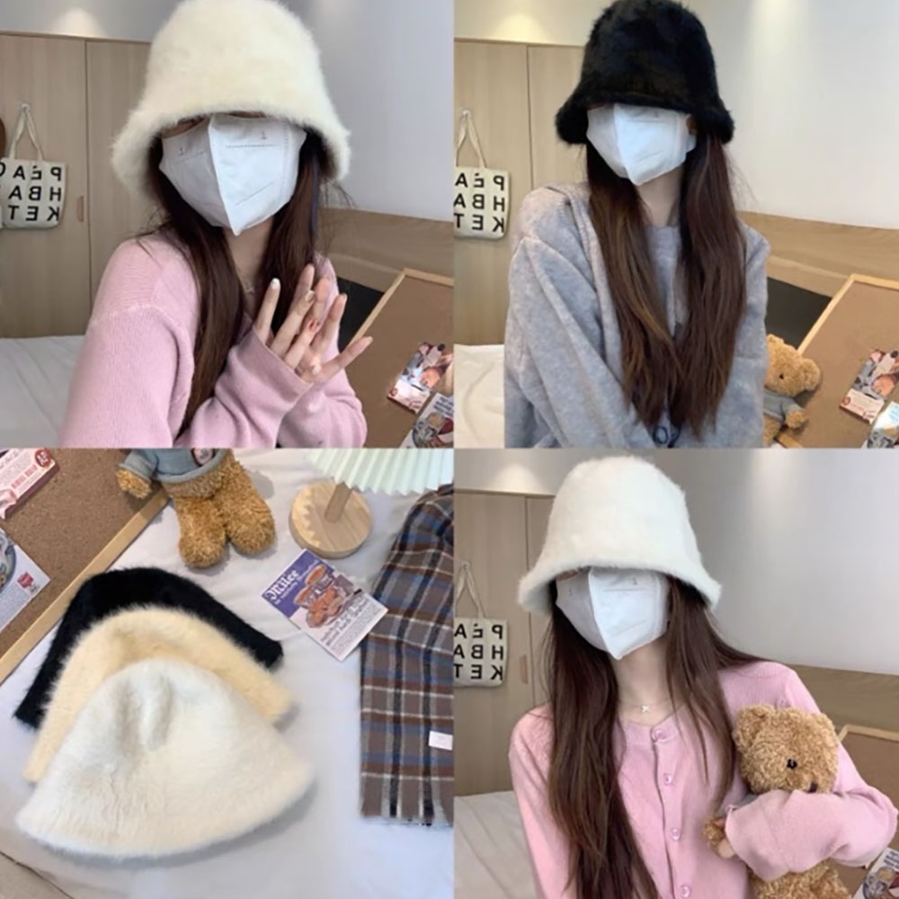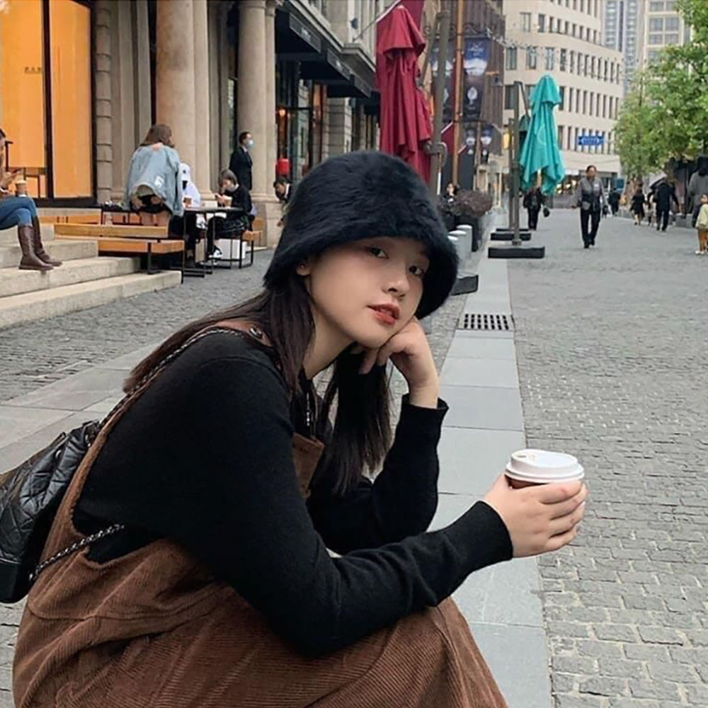 ---Nón bucket lông thỏ - mũ tai bèo Ulzzang vành cụp mềm mịn giữ ấm---