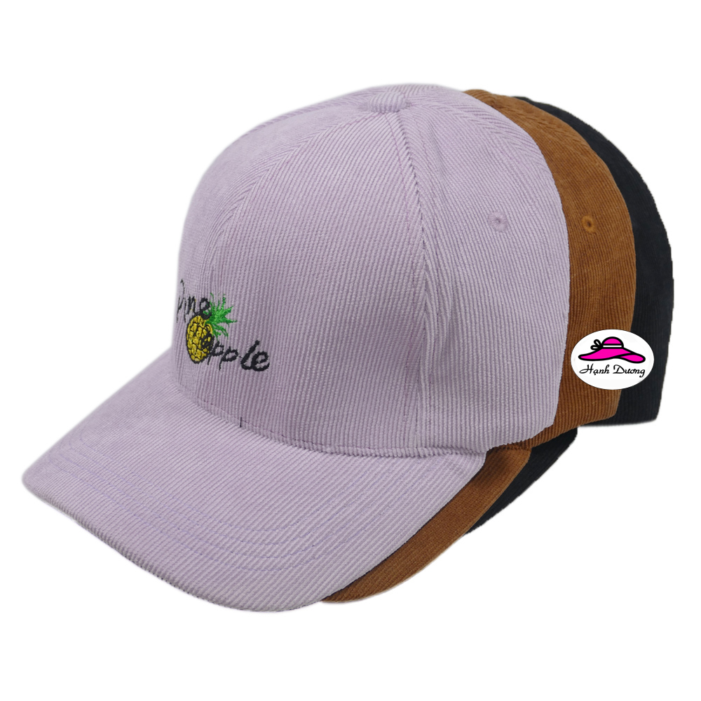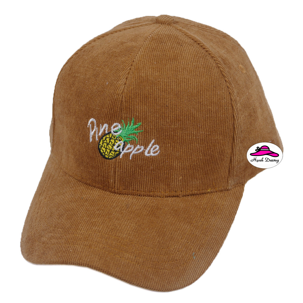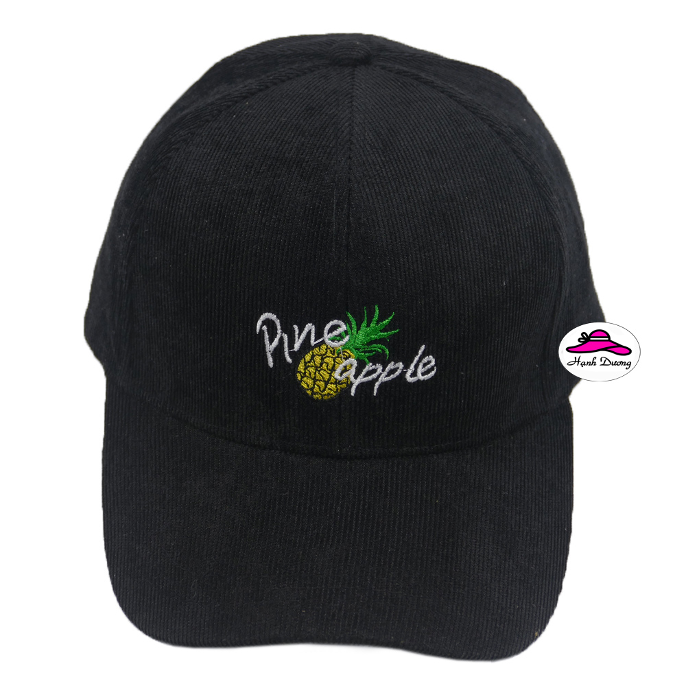 Nón kết vải nhung quả thơm PINE APPLE được may từ chất liệu vải nhung mềm mượt, tạo cảm giác thoải mái dễ chịu khi sử dụng. Các đường may chắc chắn tạo sự bền chắc cho nón. Nón có nhiều màu sắc để lựa chọn theo sở thích như ý. Nón được đục 6 lỗ thông gió tạo sự thoáng mát cho người đội. Nón phù hợp cho cả nam và nữ đội chống nắng, dùng phối đồ hoặc dùng làm quà tặng đến người thân, bạn bè. Nón có đuôi tăng giảm size phù hợp kích thước mọi cỡ đầu người đội. Cùng xem qua một số hình ảnh của mẫu nón này dưới đây nhé!