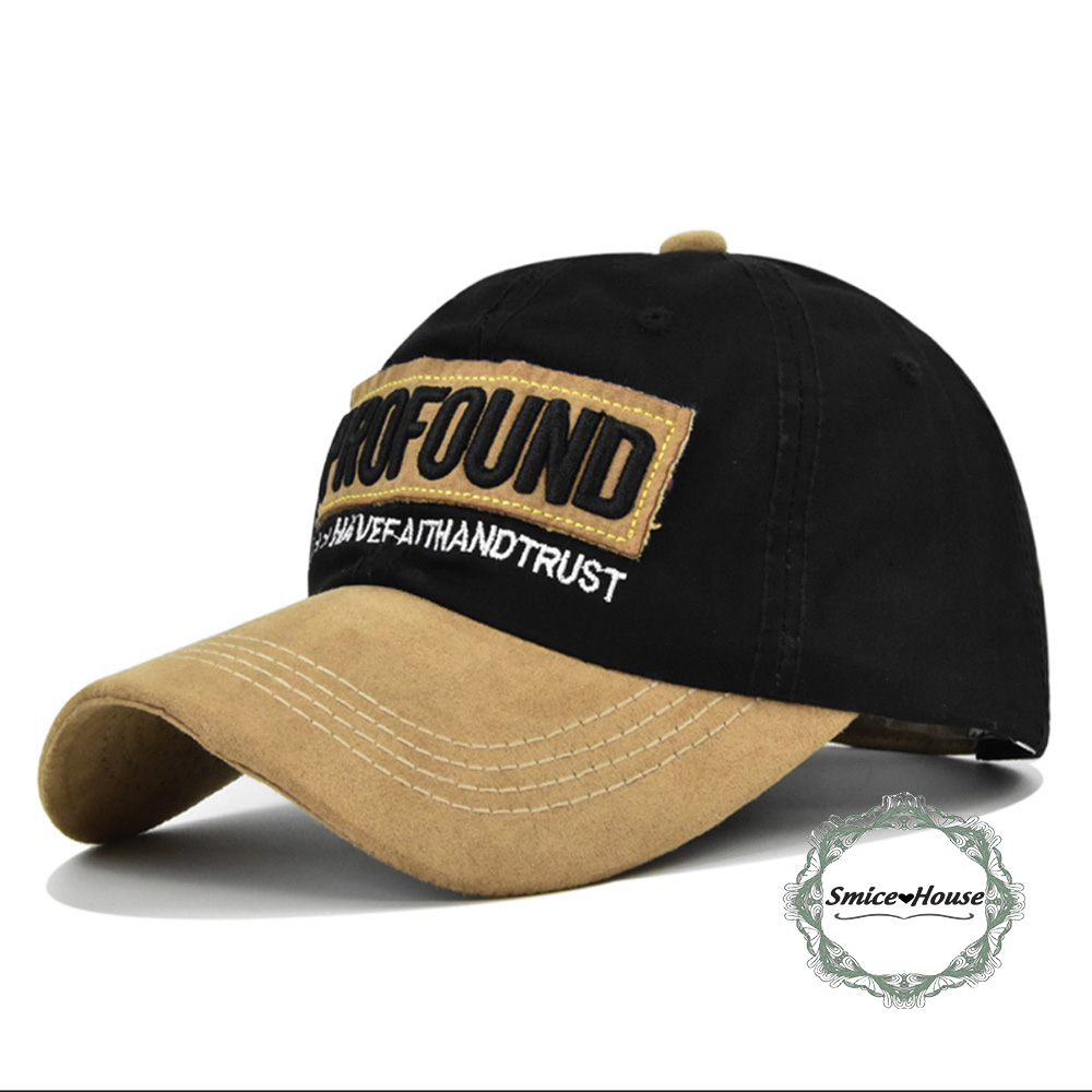Giới thiệu Nón lưỡi trai nam da lộn phối màu thêu chữ cá tính độc đáo phiên bản Hàn Quốc Mũ cao bồi dành cho nam và nữ mũ lưỡi trai mùa xuân freesize - Smice House