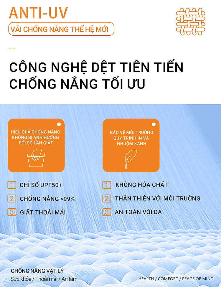 | Chống tia UV | Thoáng mát | Hút ẩm nhanh khô |