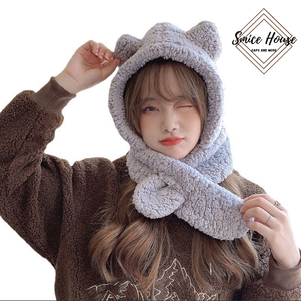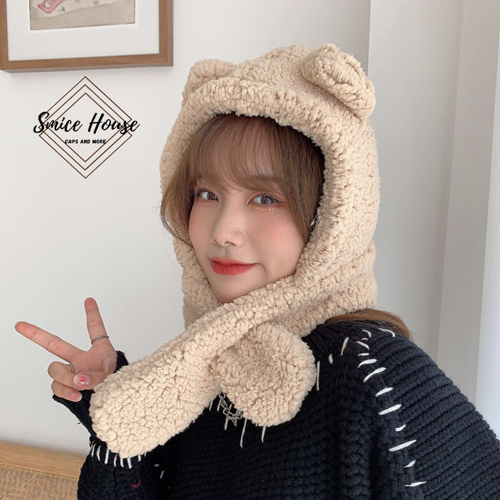 NÓN TAI GẤU GIỮ ẤM BẰNG LÔNG SIÊU CUTE CHỤP TAI MÙA ĐÔNG NHIỀU MÀU FREESIZE