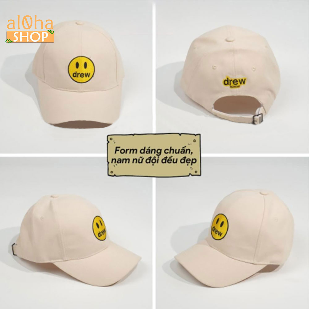 Nón Ulzzang kết thêu mặt cười DREW - mũ lưỡi trai unisex nam nữ chống nắng - al0ha Shop