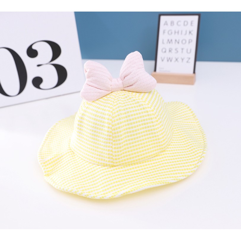Nón vành rộng có nơ quai thun, họa tiết kẻ sọc phong cách hàn quốc cho bé gái từ 6-24 tháng