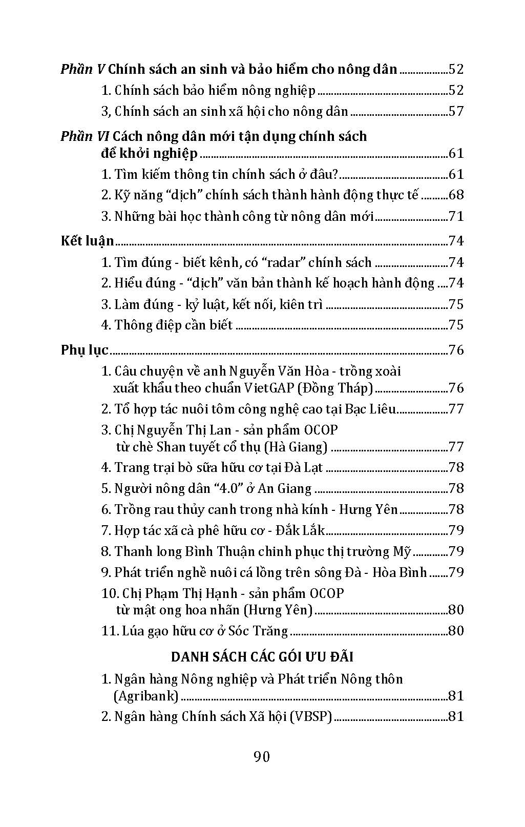 Là một cẩm nang thực tiễn, khoa học và dễ hiểu, trình bày một cách có hệ thống các chính sách quan trọng (như đất đai, tín dụng, đào tạo, thị trường, bảo hiểm) kèm theo ví dụ và hướng dẫn cụ thể; giúp người nông dân am hiểu và áp dụng tốt các cơ chế hỗ trợ này để thoát khỏi mô hình sản xuất nhỏ lẻ, trở thành "doanh nhân nông nghiệp", phát triển bền vững, gắn với thị trường, công nghệ và hội nhập quốc tế.