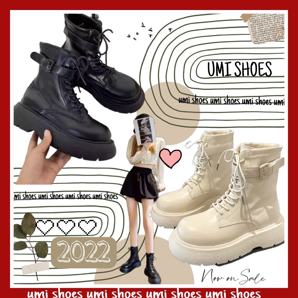 Giày Dép Nữ > Bốt > Bốt thời trang || [NOWSHIP] Giày Bốt Cao Cổ nữ Ulzzang Kéo Khóa Buộc Dây Cá Tính Thời Trang Nâng Đế Cao 4cm Mới Hot Đẹp Da Mềm xinh trẻ