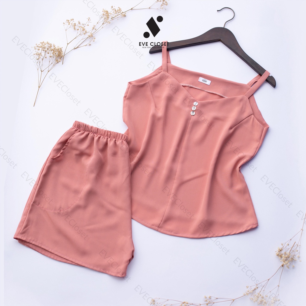 Giới thiệu Đồ bộ nữ 2 dây mặc nhà Pijama quần đùi chất đũi trơn dễ thương – Hàng thiết kế - EVECLOSET