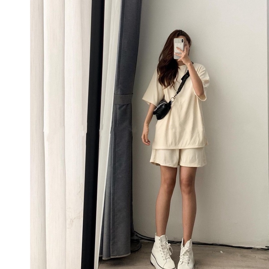 Giới thiệu Bộ đồ nữ áo tay lỡ quần sooc dáng thụng chất tổ ong freesize thời trang mùa hè trẻ trung năng động