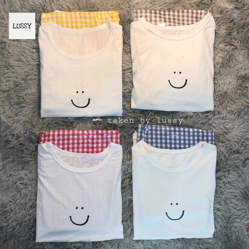 Thời Trang Nữ > Đồ ngủ > Pyjama || Đồ Bộ Nữ Cộc Tay, Bộ Đồ Ngủ Hình Mặt Cười Siêu Cute, Bộ Mặc Nhà Pijamas Nữ Tay Ngắn Quần Dài Caro Ulzzang Hàn Quốc 2021