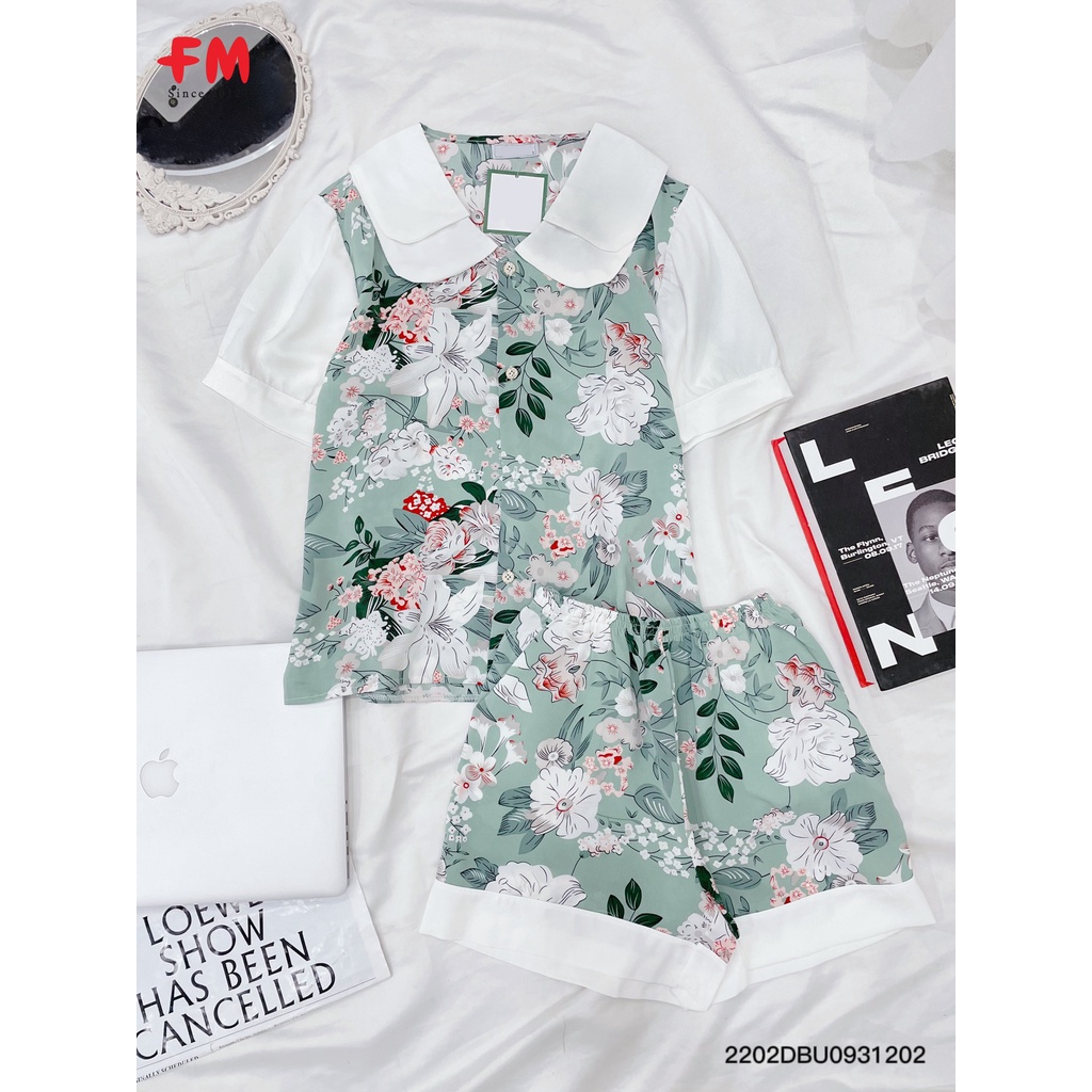 Giới thiệu Đồ bộ nữ FM Style pijama lụa mặc nhà ngắn tay quần đùi cổ bèo dễ thương thời trang 220212021