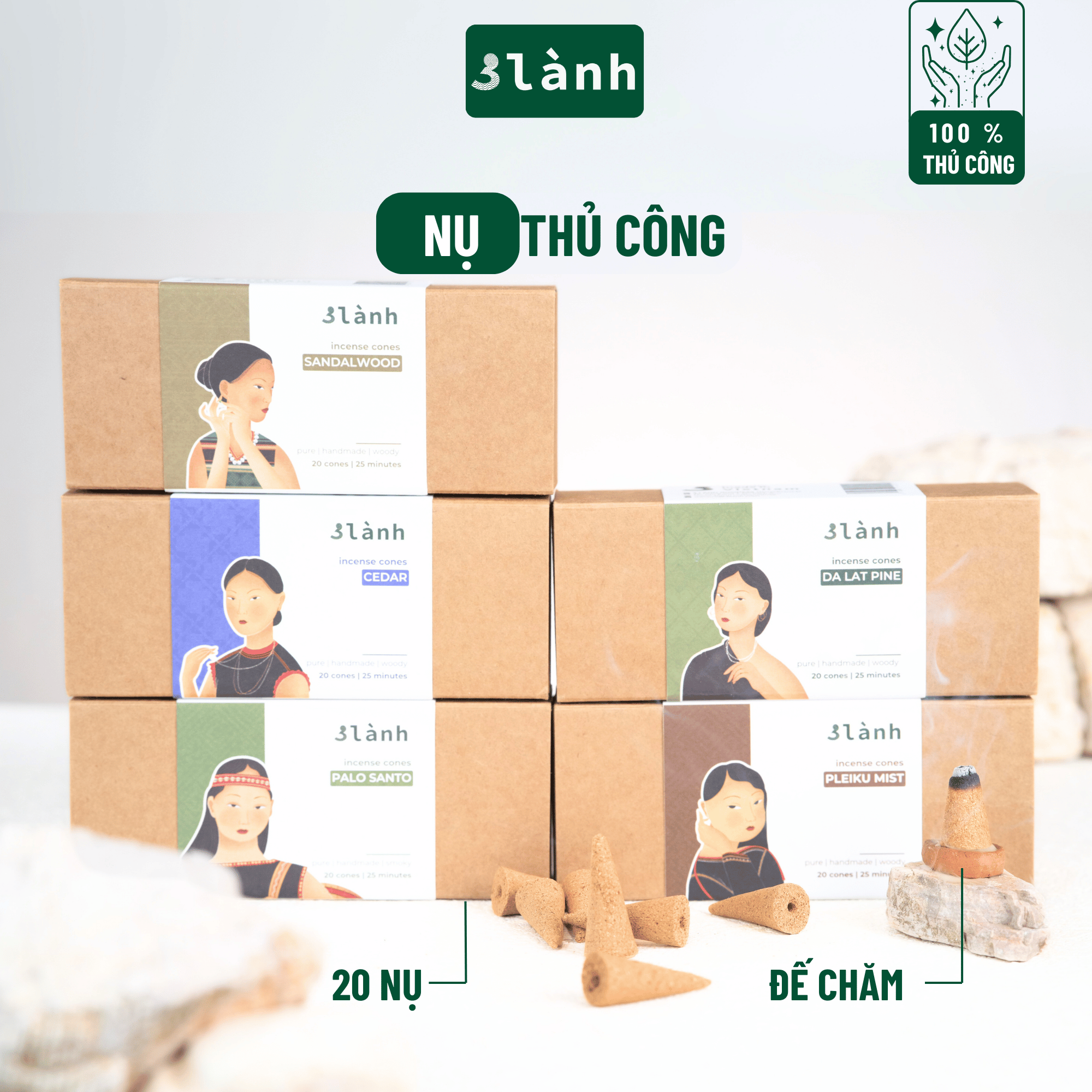 Pleiku Mist (Sớm Pleiku): agarwood (trầm hương), palo santo (gỗ thánh), frankincense (nhũ hương), benzoin siam (an tức hương), bergamot (vỏ cam), keo bời lời. Hương gỗ, ấm sớm mai