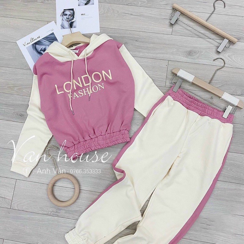 đồ bộ thể thao thu đông phối màu có mũ in chữ LONDON
