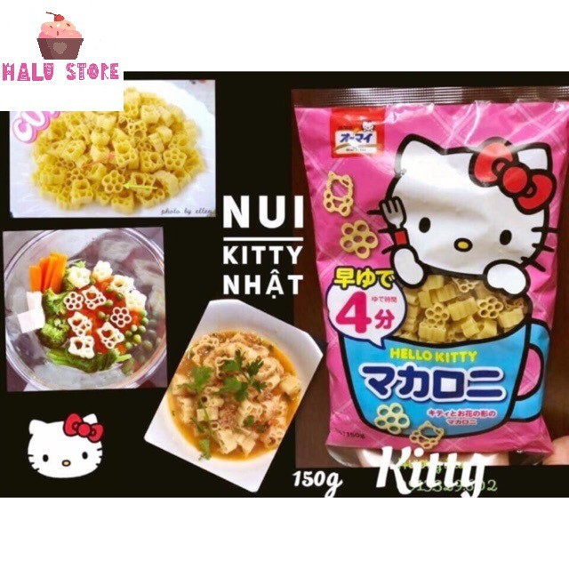 🏩 ĐẶC TÍNH SẢN PHẨM ☑️ Bé ăn cháo mãi cũng chán, mẹ thử đổi món cho bé bằng món nui Hello Kitty này đi ạ, vừa đổi món vừa giúp bé tập ăn thô, tập nhai và tập ăn bốc tốt hơn.. ☑️ Sản phẩm nui Hello Kitty được làm từ lúa mì nguyên cám nội địa Nhật Bản, hoàn toàn không có muối và chất bảo quản, tốt cho sức khỏe và hệ tiêu hóa của bé.