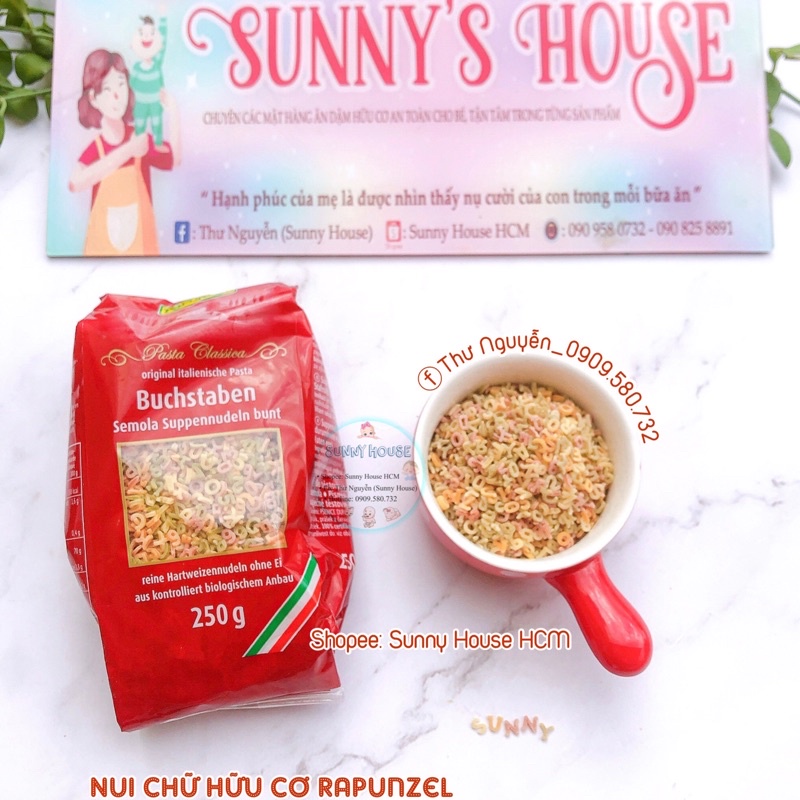 Giới thiệu Nui hữu cơ hình chữ cho bé ăn dặm Rapunzel Đức 250g (Date 2023)