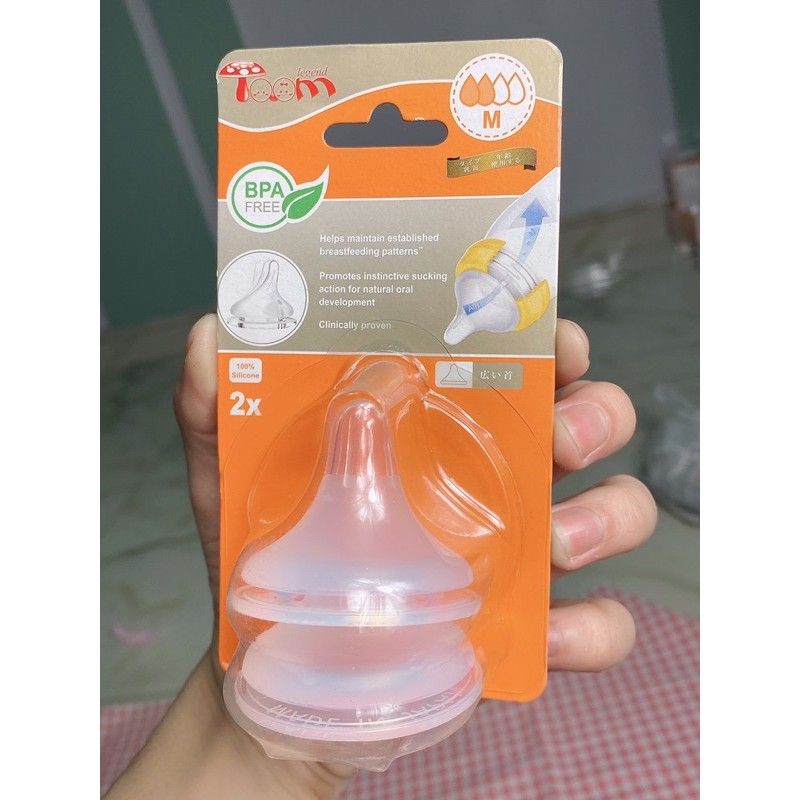 Núm ty TO.OM siêu mềm S/M/L/+ cổ rộng - Núm lắp vừa bình Pigeon nội địa cổ rộng,Lansinoh Momma,Wesser cổ rộng,Nuk cổ rộng. - Núm Ty siêu mềm,mềm hơn cả núm Pigeon Nội Địa luôn đó các mẹ ạ. -Sản phẩm được làm từ chất liệu silicone cao cấp siêu mềm, bền, đẹp, khả năng đàn hồi cao, đạt đến đôh lý tưởng để bé bú sữa được thoải mái và dễ dàng giúp phát triển cơ hàm của bé qua cử động lưỡi tự nhiên - Khách hàng mua lẻ 1 cái không có vỉ -Có 4 size: S,M,L,+ + Size S (lỗ tròn ) dành cho bé từ 0-3 tháng + Size M (lỗ tròn) dành cho bé từ 4-6 tháng + Size L (L tròn) dành cho bé trên 7 tháng + Size + ( Y cut) dành cho bé từ 3-18 tháng
