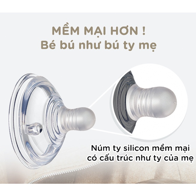 Đặc điểm núm ty silicon siêu mềm tự nhiên Tommee Tippee Closer to Nature: • Chất liệu silicon cao cấp, mềm mại hơn, mô phỏng sự co dãn, đàn hồi của ty mẹ • Cấu trúc mịn, tạo cảm giác gần hơn với làn da mẹ, trải nghiệm như bú mẹ • Bầu ty rộng, được thiết kế hình dáng bầu ngực mẹ giúp bé ngậm mút dễ dàng, tự nhiên, chuyển tiếp nhẹ nhàng từ ty mẹ sang bình. • Van điều tiết tối ưu Easi-Vent ngăn chặn lượng không khí hòa tan trong sữa, giúp bé tránh bị đầy hơi • Phía bên mặt trong của núm ty có các đường rãnh sóng theo vòng xoắn ốc, rất đặc trưng và được đăng ký bản quyền. Các đường rãnh sóng này giúp cho núm ty co giãn, chuyển động khi bé bú đồng thời điều tiết dòng chảy của sữa, lưu thông dòng sữa theo lực hút của bé, sữa sẽ không chạy ra ồ ạt hay xáo trộn gây ra tình trạng sặc sữa ở bé. Đây chính là sự vượt trội của núm ty Tommee Tippee so với các núm ty khác trên thị trường về mặt phát triển sản phẩm gần với tự nhiên nhất. • Núm ty tương thích với tất cả các bình sữa Tommee Tippee Closer to Nature • Không chứa BPA – đảm bảo an toàn cho bé