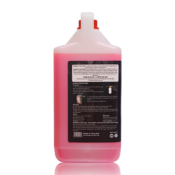 NƯỚC RỬA XE KHÔNG CHẠM 👍👍👍 Nước rửa xe không chạm là loại dung dịch có tính vệ sinh cao. Hiệu quả vượt trội, tiết kiệm thời gian, công sức và chi phí của khách hàng. Hiện nay việc sử dụng nước rửa xe không chạm ngày một nhiều. Sau đây là một vài thông tin chi tiết về nước rửa xe không chạm. Lưu ý: DUNG DỊCH HIỆU QUẢ KHI DÙNG MÁY RỬA XE ÁP LỰC ✅ Độ PH = 12: An toàn cho xe ✅ Làm sạch các vết bẩn trên bề mặt sơn, khe kẽ và các hốc khó vệ sinh ✅ Không cần chạm vào xe: Không gây xước sơn xe ✅ Tiết kiệm tới 50% thời gian rửa xe ✅ Chất tạo bóng và hiệu ứng lá sen cho sơn xe và kính 👉👉Các cách sử dụng nước rửa xe không chạm khi rửa xe 👍Cách 1: Sử dụng với bình bọt tuyết dung tích lớn từ 20 đến 30 Lít dùng cho tiểm rửa xe ✅ Pha với tỉ lệ 1:8 ✅ Cho dung dịch vào bình bọt tuyết. ✅ Cân khí tầm 6kg – 7kg và cho vào bình ✅ Phun trực tiếp lên xe và chờ vài phút để dung dịch thấm dần. ✅ Sau đó phun nước vào và lau khô. 👍Cách 2: Sử dụng bằng bình phun tạo bọt sử dụng cho máy rửa xe gia đình. ✅ Thường thì bình cầm tay có dung tích từ 0,5 đến 1 Lít ✅ Pha với tỉ lệ 1:1 hoặc 1:2 ✅ Sử dụng máy rửa xe gia đình hoặc máy nén rửa xe để phun lên bề mặt sơn. Lưu ý: ✅Khi phun dung dịch lên bề mặt sơn thì chờ tầm 1-2 phút để dung dịch thấm và tẩy hết vết bẩn khỏi bề mặt sơn. Chỉ dùng và có hiệu quả đối với máy rửa xe áp lực. Điển hình như máy rửa xe gia đình, máy nén rửa xe... Để mang lại hiệu quả tốt nhất thì chỉ nên để dung dịch thấm trong tầm 1 phút 30 giây
