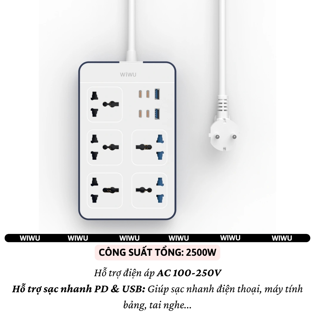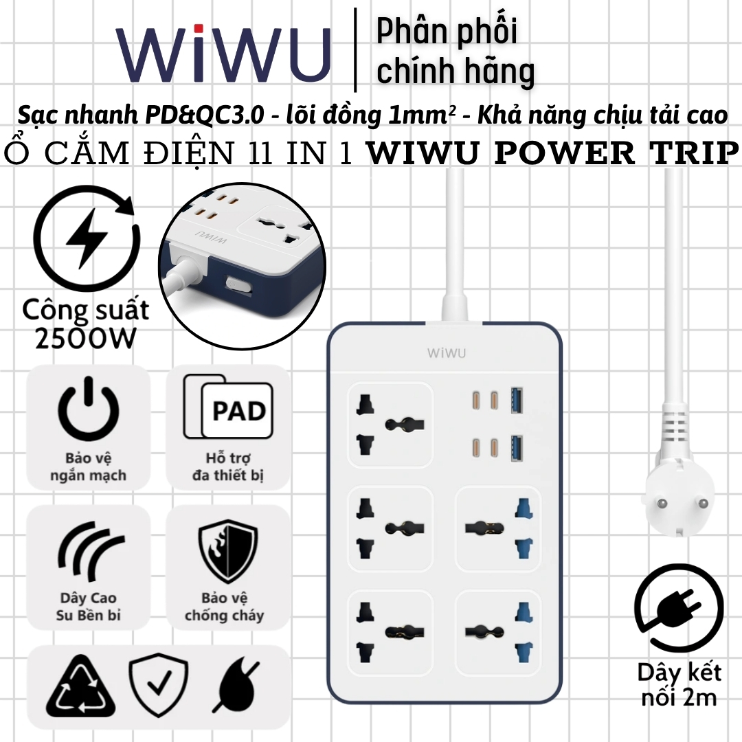 Model | Ổ cắm điện đa năng 11 in 1 2500W WIWU Wi-S006 PS524 |