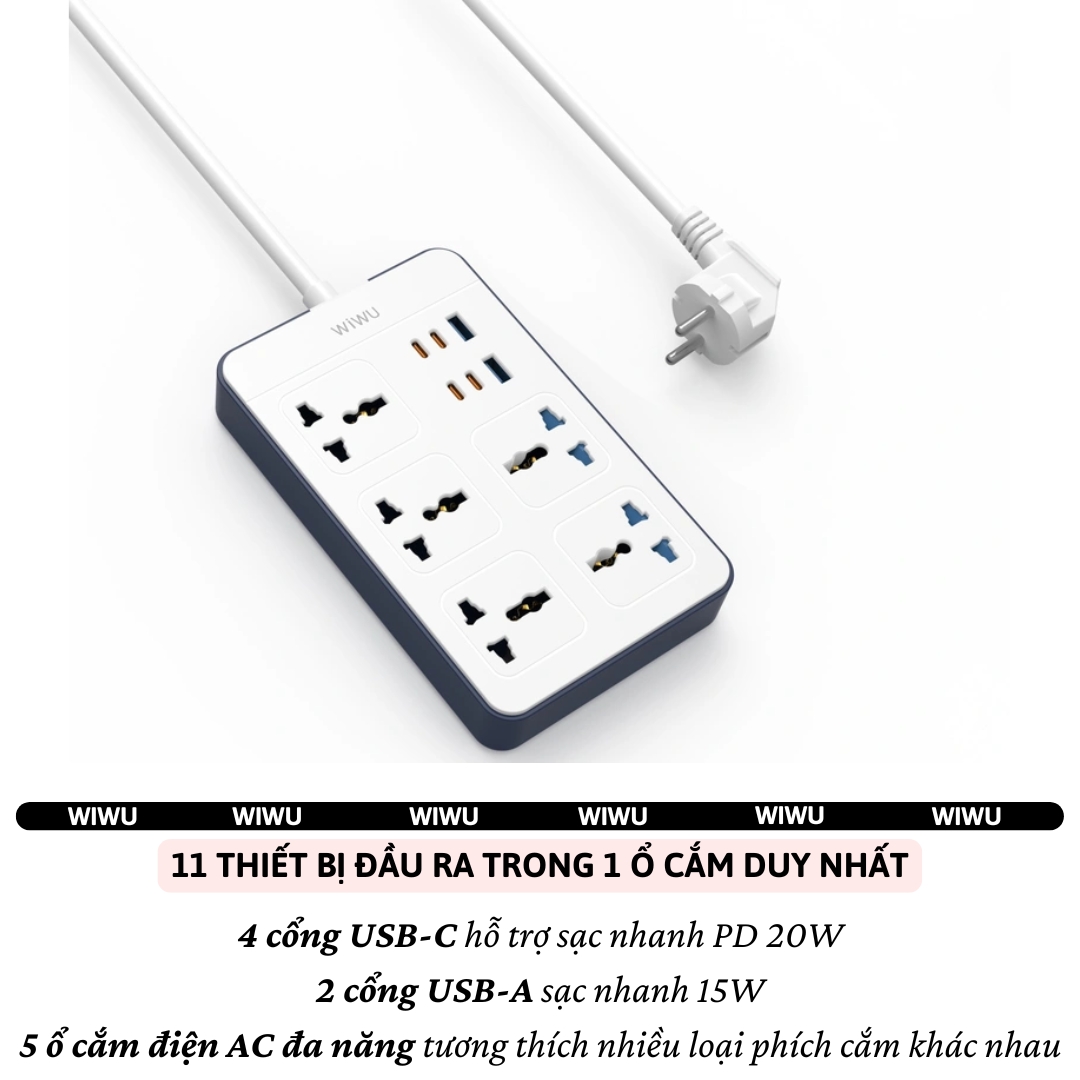 WIWU 11 in 1 Power Strip – Tối Ưu Không Gian, Đa Năng Vượt Trội