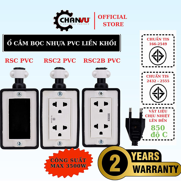 Ổ cắm điện không dây bọc nhựa PVC liền khối, âm tường có đầu nối đất khối đế PVC, phích cắm - Model RSC2B