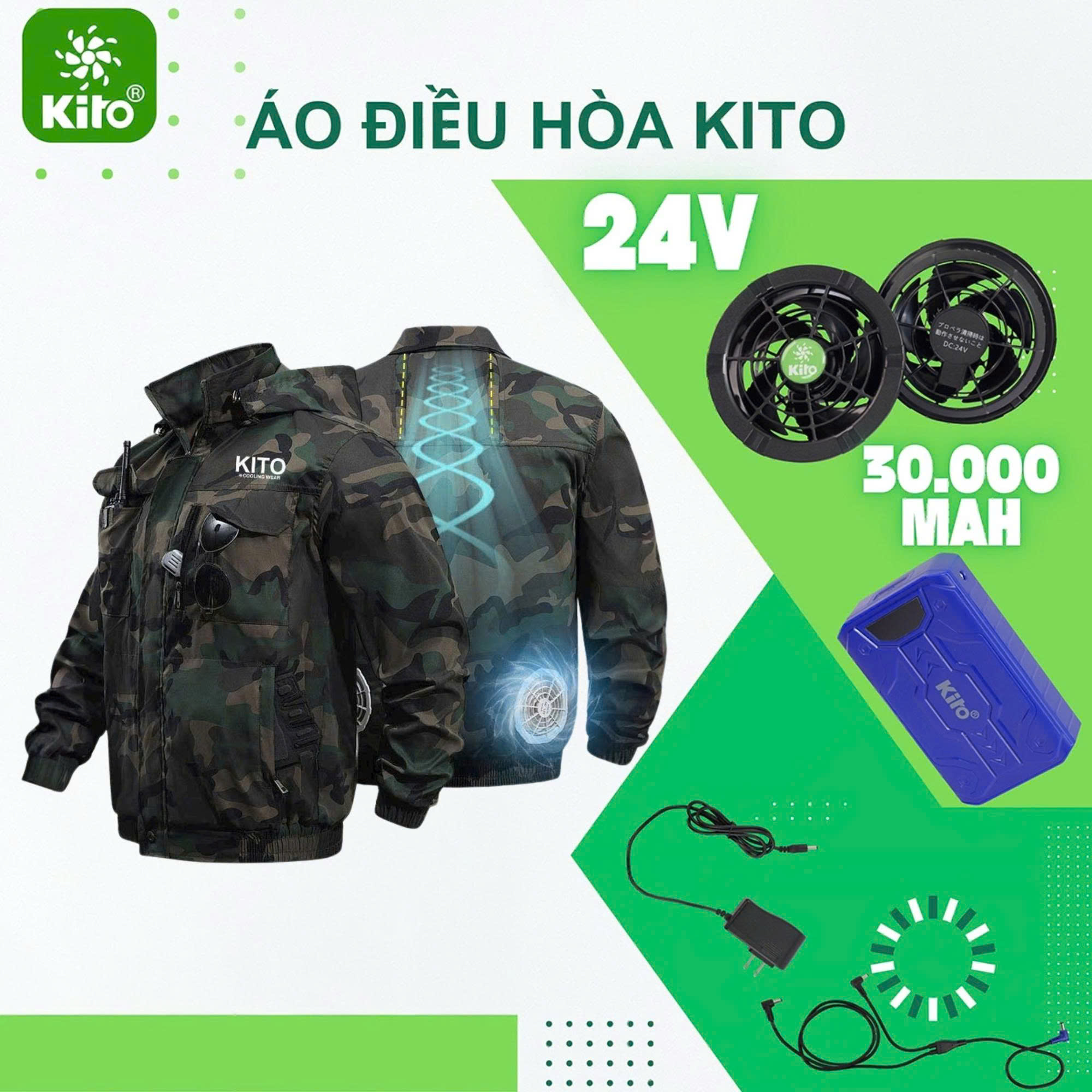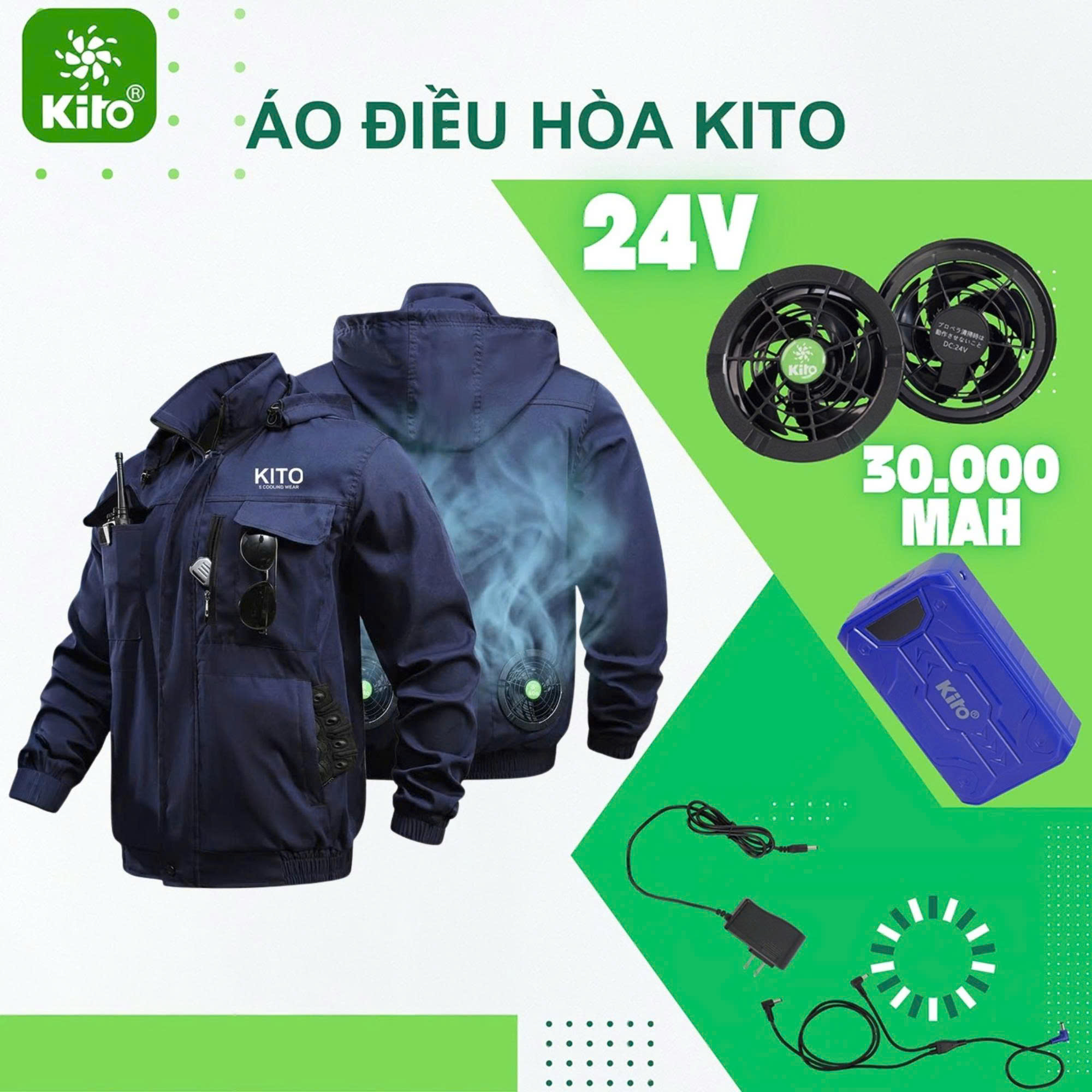 Áo điều hoa KITO PRO mới nhất 2026 Pin 30000mah,Quạt 24V Chống Nước Siêu Mạnh