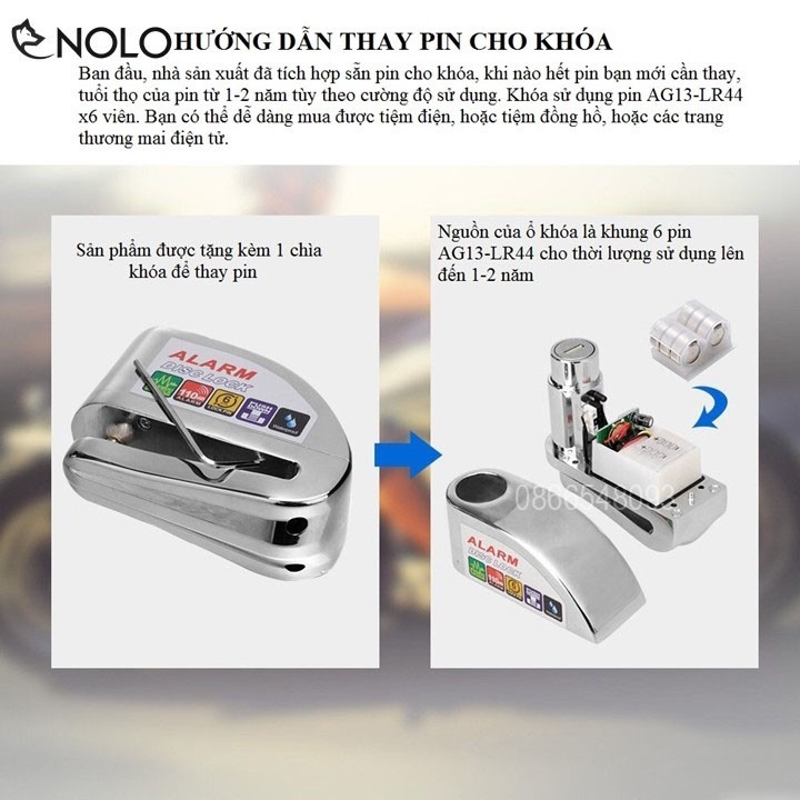 Giới thiệu Ổ khóa đĩa xe máy chống trộm có còi hú báo động bảo hành 6 tháng