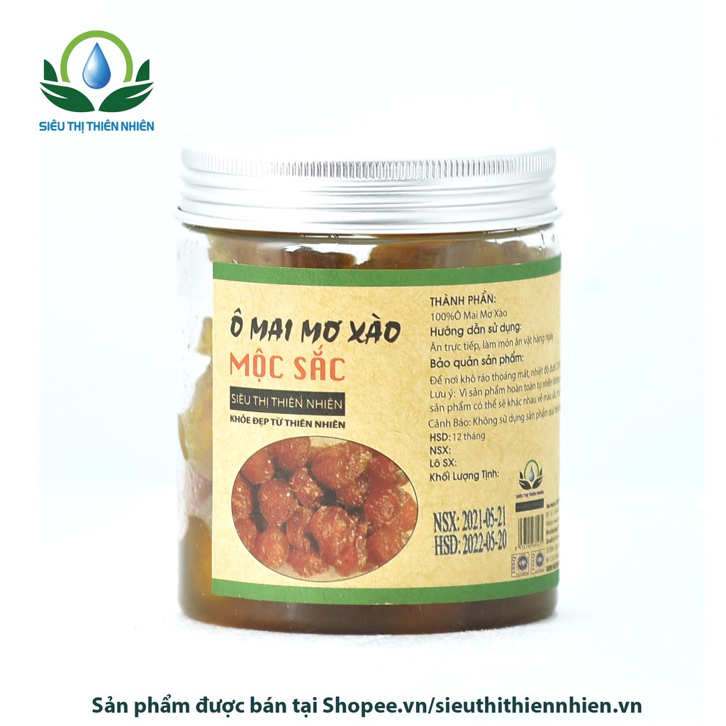 Ô mai mơ xào mộc sắc, xí muội của siêu thị thiên nhiên - Quy cách đóng gói: hộp - Khối lượng tịnh: 200g - Xuất xứ: Việt Nam - Đạt chuẩn ISO 22000 - 2018 và HACCP 2003 - Kiểm tra mã vạch trực tiếp trên bao bì của sản phẩm - Bảo quản: Nơi khô ráo thoáng mát, tránh ánh nắng mặt trời - Đóng kín sau khi sử dụng - Hạn sử dụng: 12 tháng