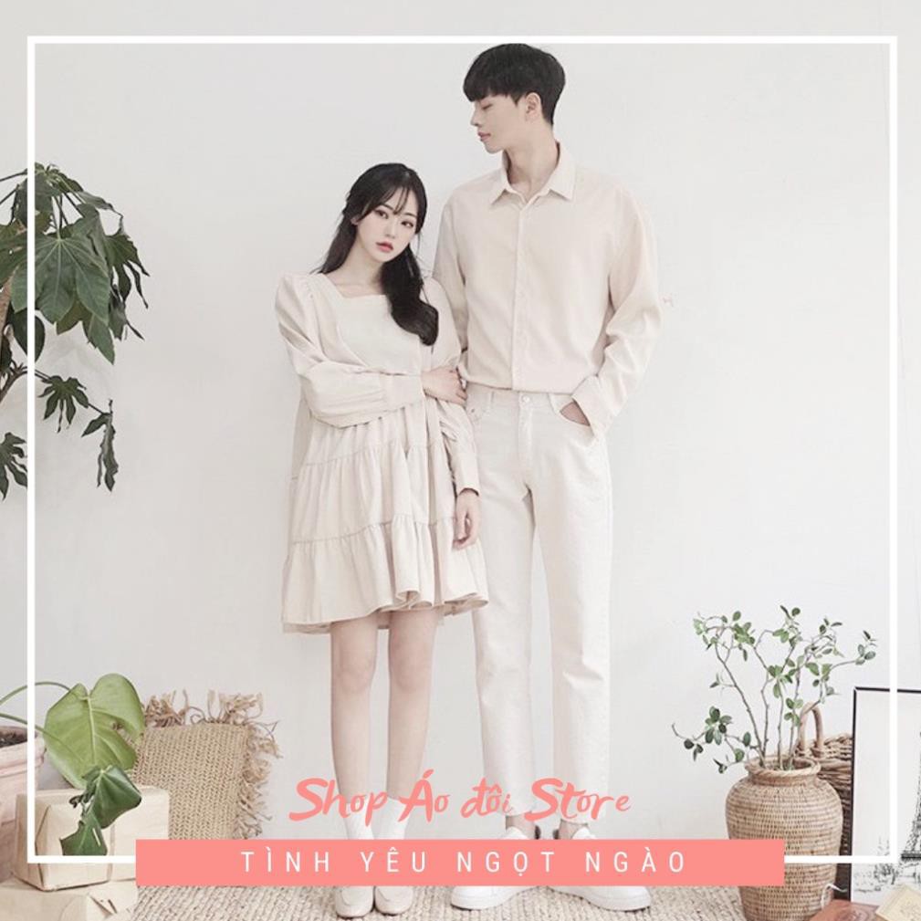 Bộ áo váy sơ mi cặp cao cấp, đồ đôi nam nữ dễ thương, chất đẹp để chụp hình cưới, đi du lịch