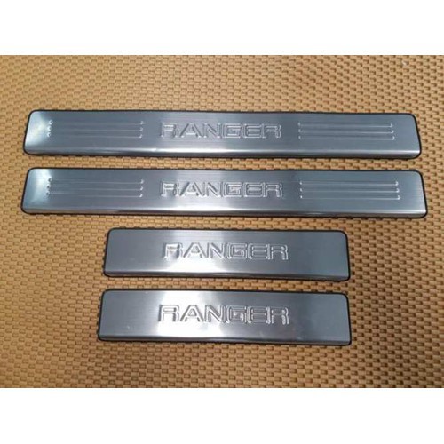 Ốp bậc cửa ngoài Ford Ranger có chất liệu inox xước phay sáng bóng.