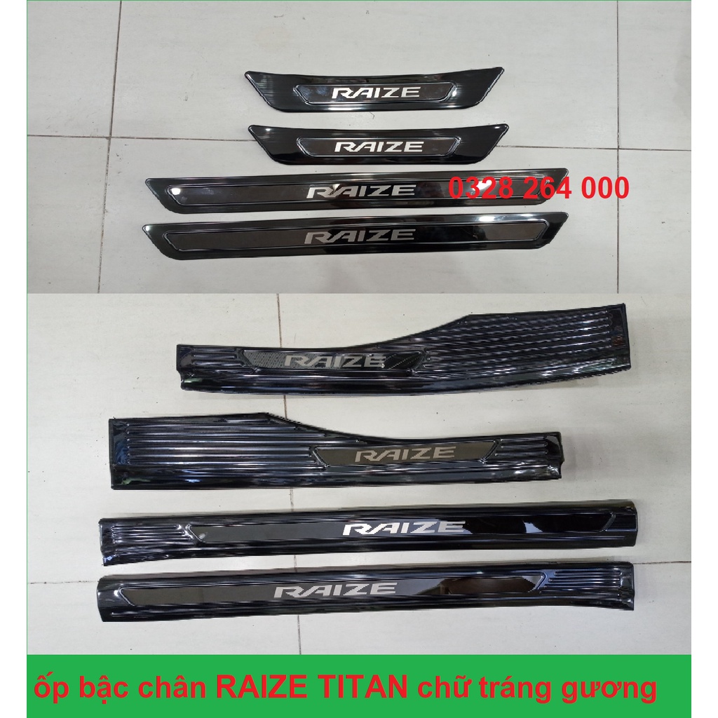 Ốp bậc cửa, nẹp bước chân trong, ngoài titan xe Toyota Raize 2021 - 2022, Chữ tráng gương cao cấp