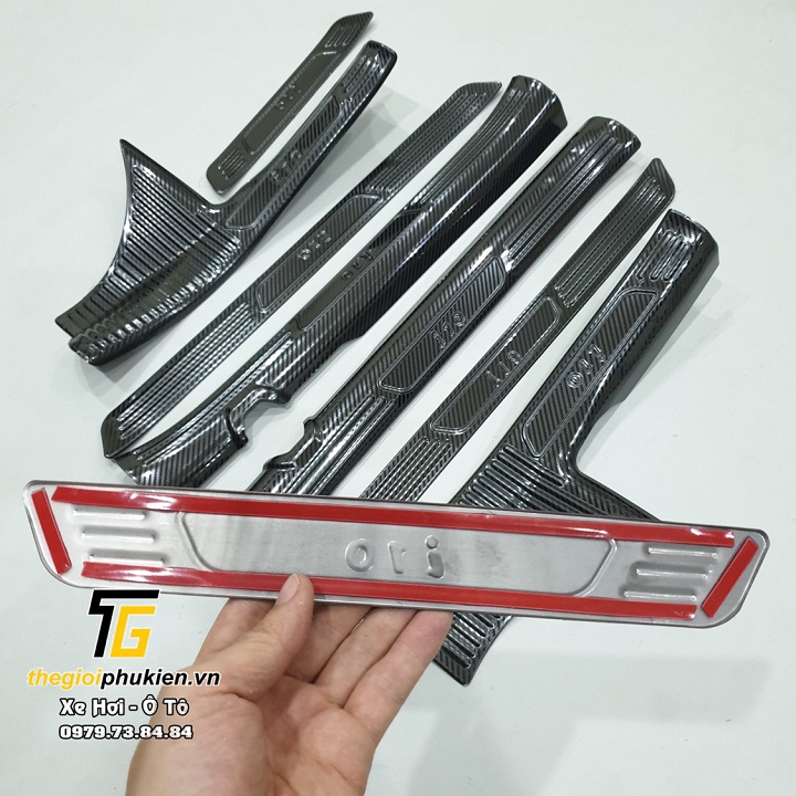 Giới thiệu Ốp bậc cửa, Nẹp bước chân trong ngoài CARBON xe Hyundai Grand I10 2021 2022 vân Cacbon cao cấp